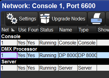 3. In the Network window, click on the Net # of the DMX Processor you are patched to. The cell will get a red box around it.